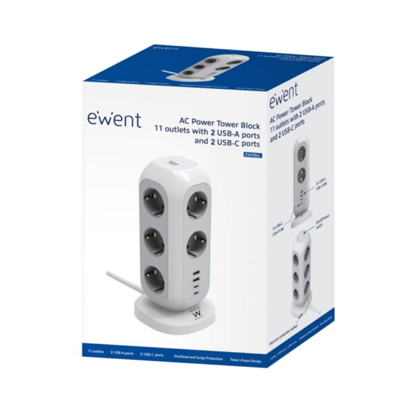 Ewent Ew3861 Regleta 11 Tomas 2 Carga Usb Y Usb C